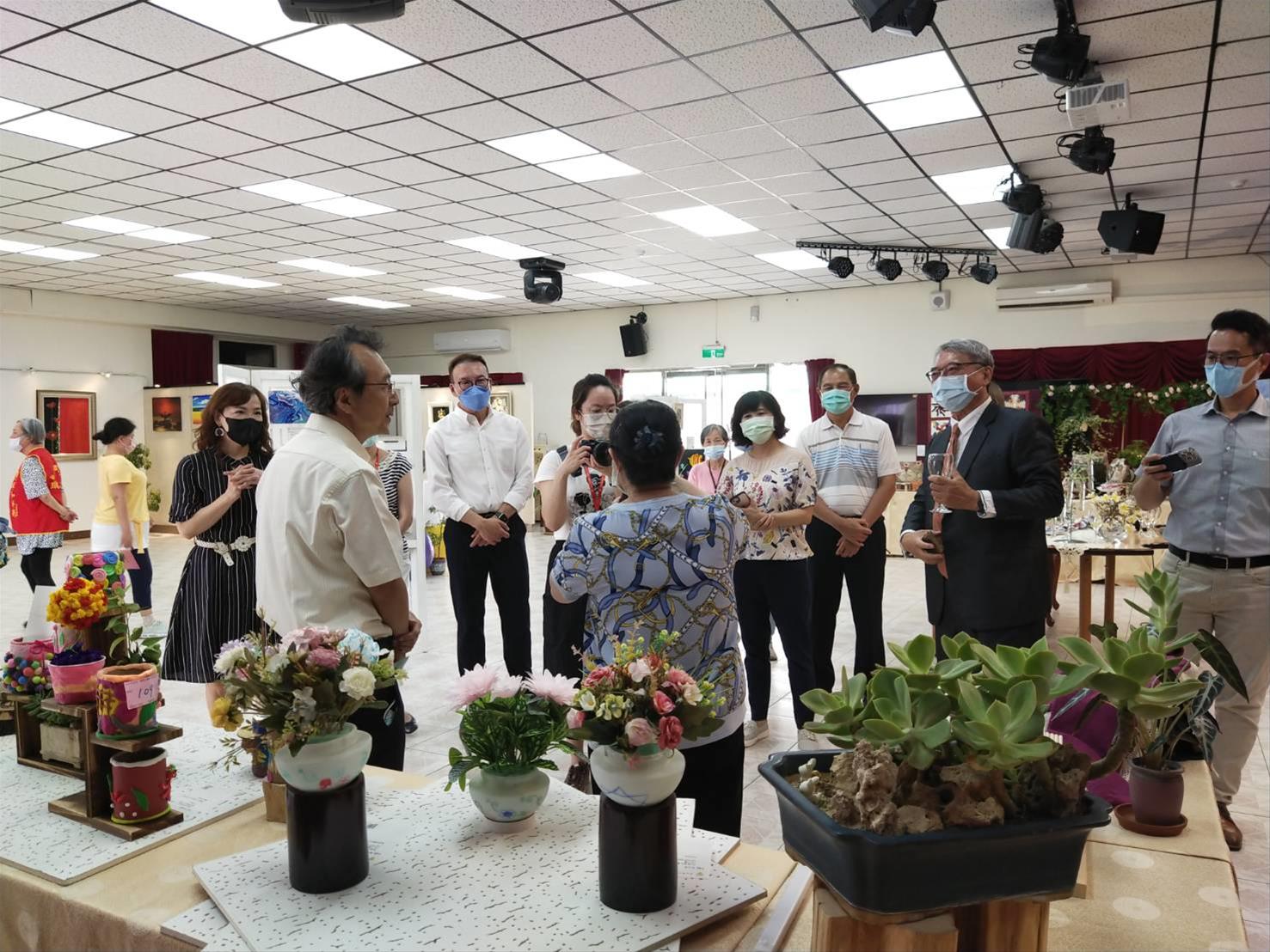 開展的茶會將會場,透過互動,整個展覽區的布置已經無形地挑起觀賞者的情緒,將也滲透我們平凡的生活不知是否也悄悄改變觀賞者心理與生理狀態。然其中幾件作品使用的複合媒材,是瓷磚、鐵線與樹枝線條的刷動釘製;它本是無人要的素材,經作者富於其生命力的塑造,一氣呵成,是令人感覺流暢連貫的佳品。另油畫、水彩畫、棉紙撕畫、拼布,在藝術者的巧思下,作畫、縫製出;栩栩如生、刻畫心扉之作;在靜謐的空間中,緩緩地散發著生命的光和熱,感覺到空氣中充滿著神秘的氣息、力量,流竄在周圍,伴隨令人悸動的生命律動。整個特展期間6/27開幕-7/11閉幕有王董事長敬豪、林執行國慶、李聲吼教授、長福樂多魏成安總經理、檸檬樹社區復健中心董榮昌董事長蒞臨會場及贈送盆栽與花架;帶來祝賀:展出成功及讚美:多采多姿、傲視群倫;展覽會辦理的有聲有色。