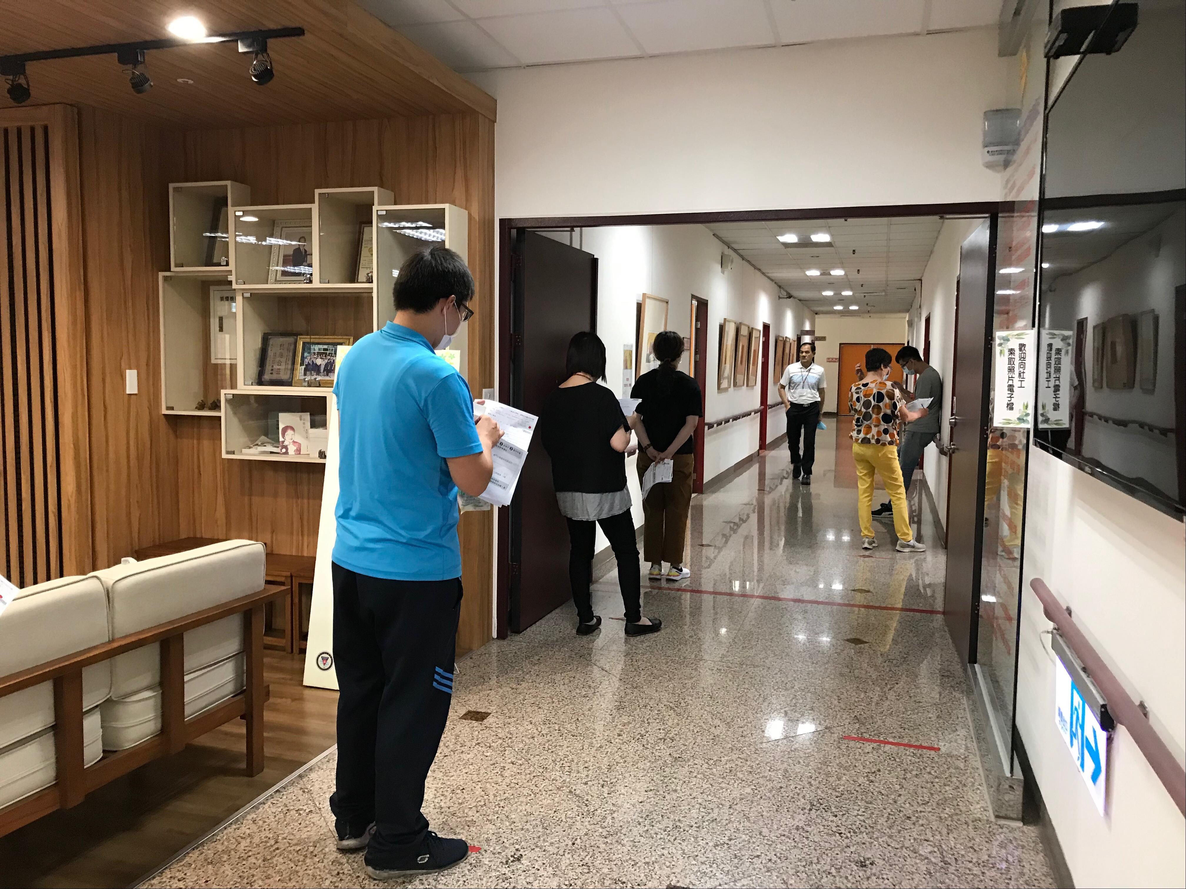 看似例行業務,卻因「武漢肺炎」的變數,讓執行作業變成嚴峻考驗。配合多年的高醫,因疫情影響,健檢人力調度困難無法承接。經洽詢多家醫院,終於在高醫協助下,由小港醫院承辦今年員工健檢。再者,為了保護園區內住民安全,要同時兼顧住民活動空間及體檢場地規劃,此次也限縮健檢場地。因此,體檢場地只能維持原有的禮堂(一般檢查)再加本家會議室(腹部超音波)、諮商會談室(心電圖檢查)克難中進行。場地雖然克難但個人隱私維護仍是百分百達標。