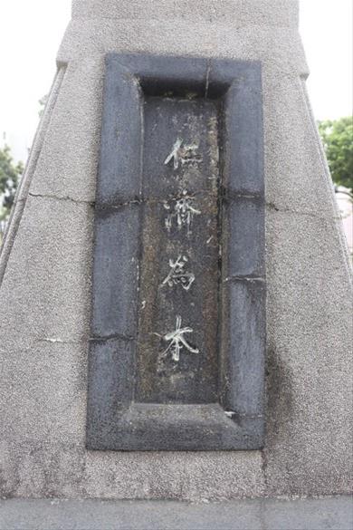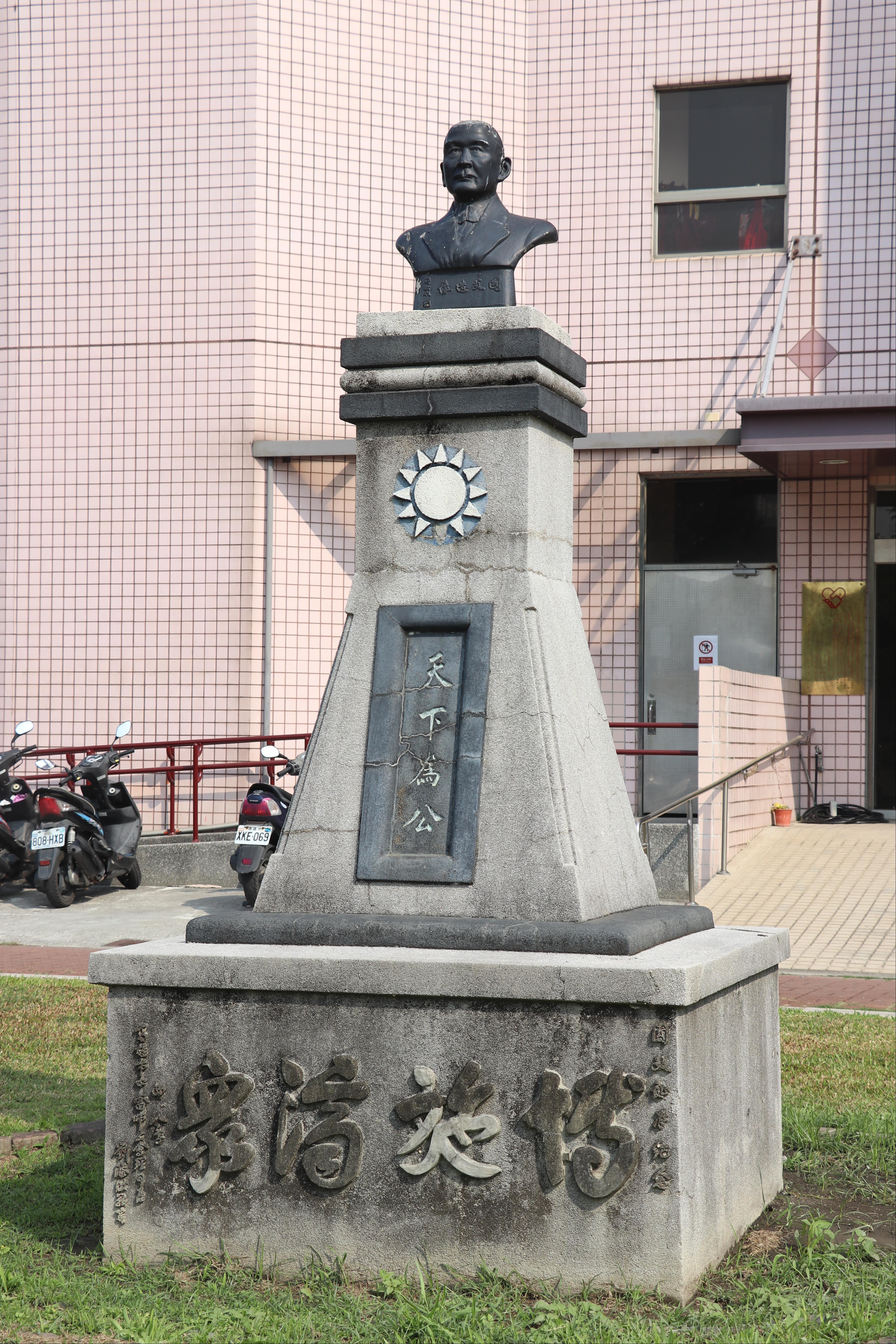 「天下為公」國父銅像,為當年之高雄巿中醫師公會贈送,並贈字「博施濟眾」。其後面為慶祝「高雄救濟院」創立10週年紀念,院長洪朝宗先生所題「仁濟為本」、「為善最樂」。
