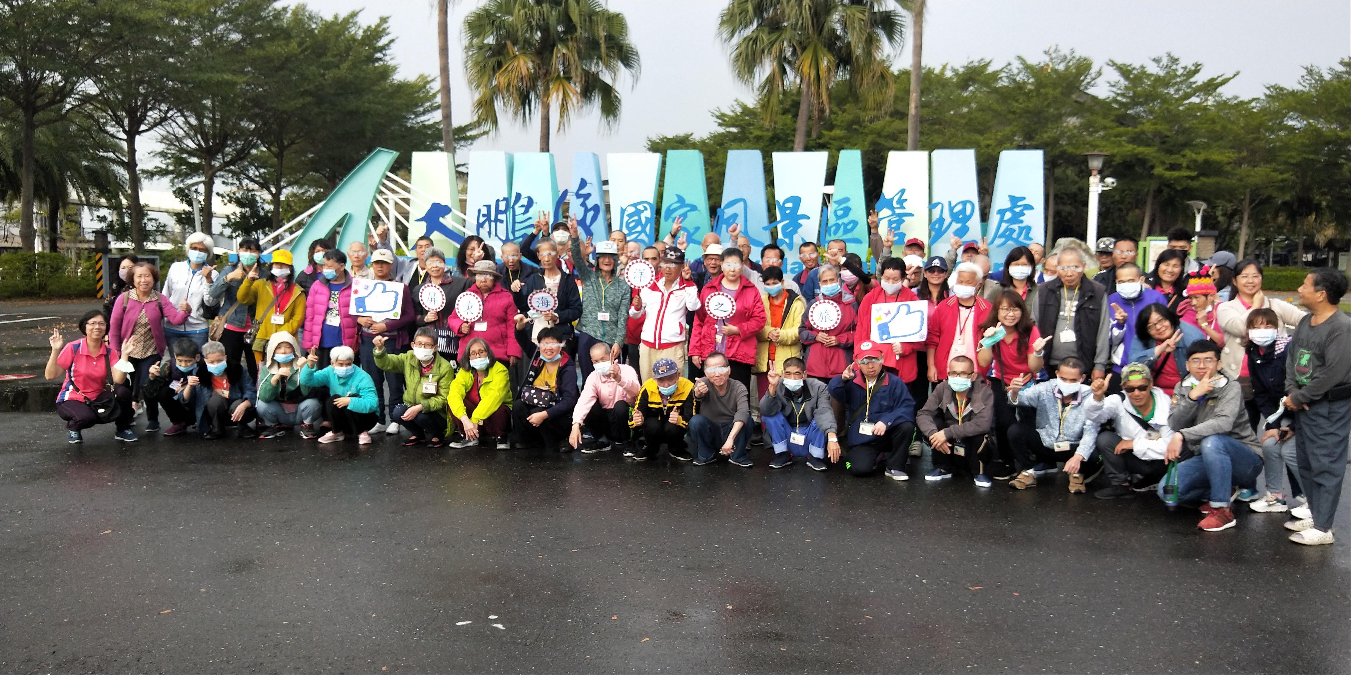 12月份正值秋高氣爽適合旅遊的好天氣,12月3日家友們帶著歡喜愉快的心情,往第一站大鵬灣出發,途經東港跨海大橋。大鵬灣位於屏東縣東港與林邊鄉交接處,於2014年被觀光局列為適合銀髮族出遊的熱門風景區之一,以「車程短,走得慢、吃的軟、看的久」等主打訴求,強調養生、樂活、自然、無障礙,以溼地生態之美為號召,鼓勵長者出遊,體驗不一樣的南部水岸風光。