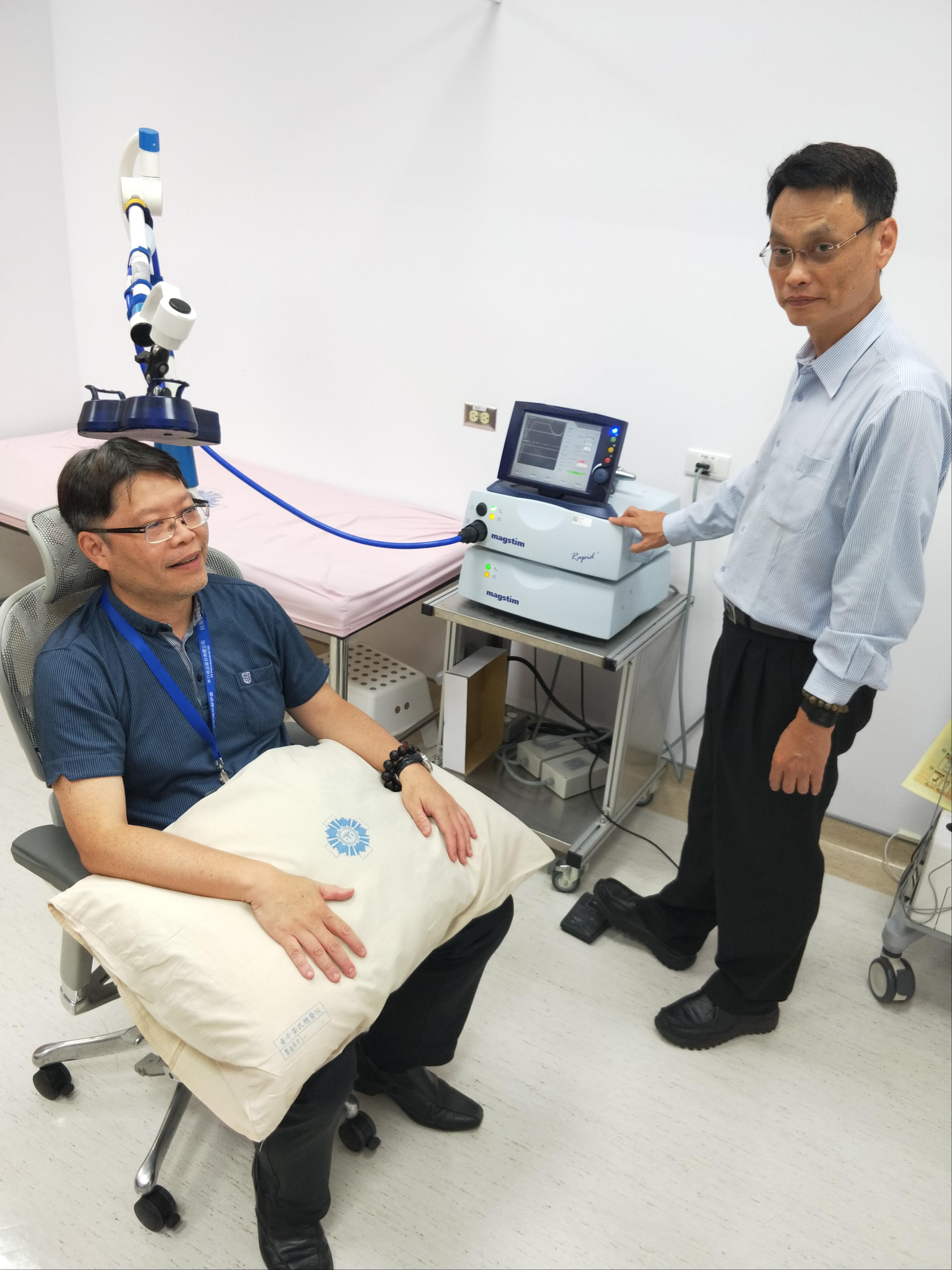 重覆經顱磁刺激術(r-TMS)在107年8月通過了衛生署用來治療對藥物治療效果不佳的憂鬱症患者的使用許可,國內如台北榮總、台大醫院、中國醫大附醫、台中榮總系醫學中心都已陸續引入列為臨床標準治療模式。高雄地區阮綜合醫院於今年引入。明年附醫、高雄長庚精神部及其它醫學中心都將引入r-TMS來對憂鬱患者提供更完善的醫療服務。