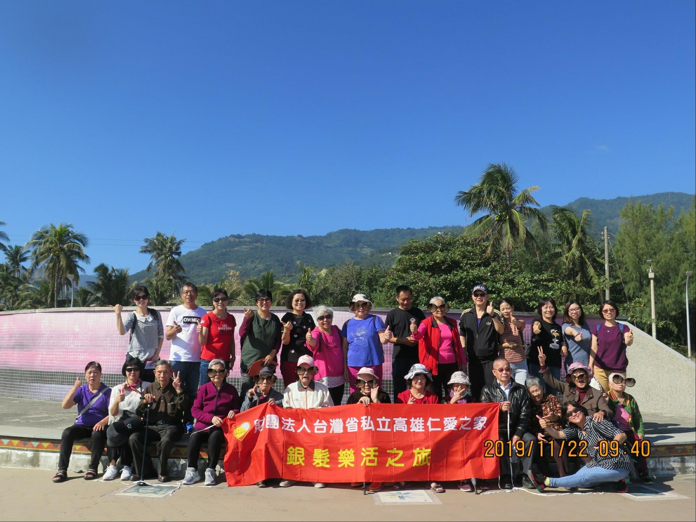 翌日大地在美麗的曙光中甦醒,早餐時間長輩們享用美味的鳳山知名肉包和養生熱飲,四台豪華休旅車在九點準時報到,專業導遊幽默風趣的介紹風景人物,在歡樂的笑聲中抵達首站-曙光公園,這裡是每年元旦迎第一道曙光的最佳欣賞地點,長輩們開心的看著海景,襯著無敵海景拍了張團體照。