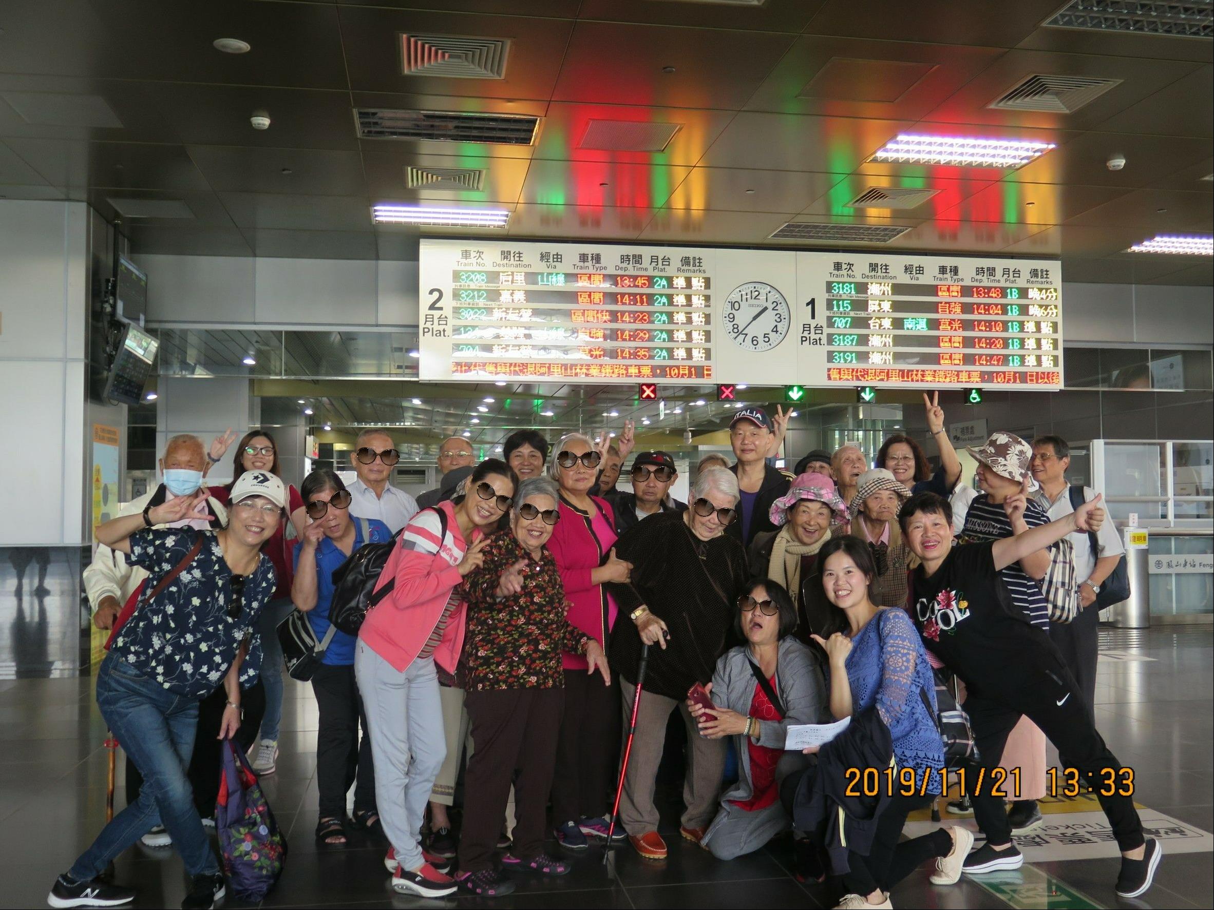 我在鳳山火車站迎接第一批到達的長輩,看著每位下車的長輩興奮的表情,瞬間我也被感染了這開心的心情,牽著長輩的手進入月台,好幾位長輩只要看到火車進站就急著問是不是這班車,迫不急待的想坐上火車,台鐵的站務人員貼心的在門邊協助長輩上車,並不斷的提醒要小心階梯,一再叮嚀火車一定會等到每位長輩都上車才會開動(在此感謝台鐵人員),上了車第一次跟團的我以為長輩上車會立刻睡覺,結果跌破我的眼鏡,一路上長輩們細數著過了幾個山洞,有的訴說某站是她的故鄉,有的欣賞著從未看過的東部海岸美景,二個多鐘頭後到達金崙車站,平安抵達溫泉民宿,先遣部隊美玲和精鋒大哥已將大夥行李和房間安排妥當,識途老馬的爺爺奶們立刻換上泳裝,泡溫泉的泡溫泉,足浴的足浴,唱卡拉OK的也立刻拿起麥克風高歌一曲,好不熱鬧。