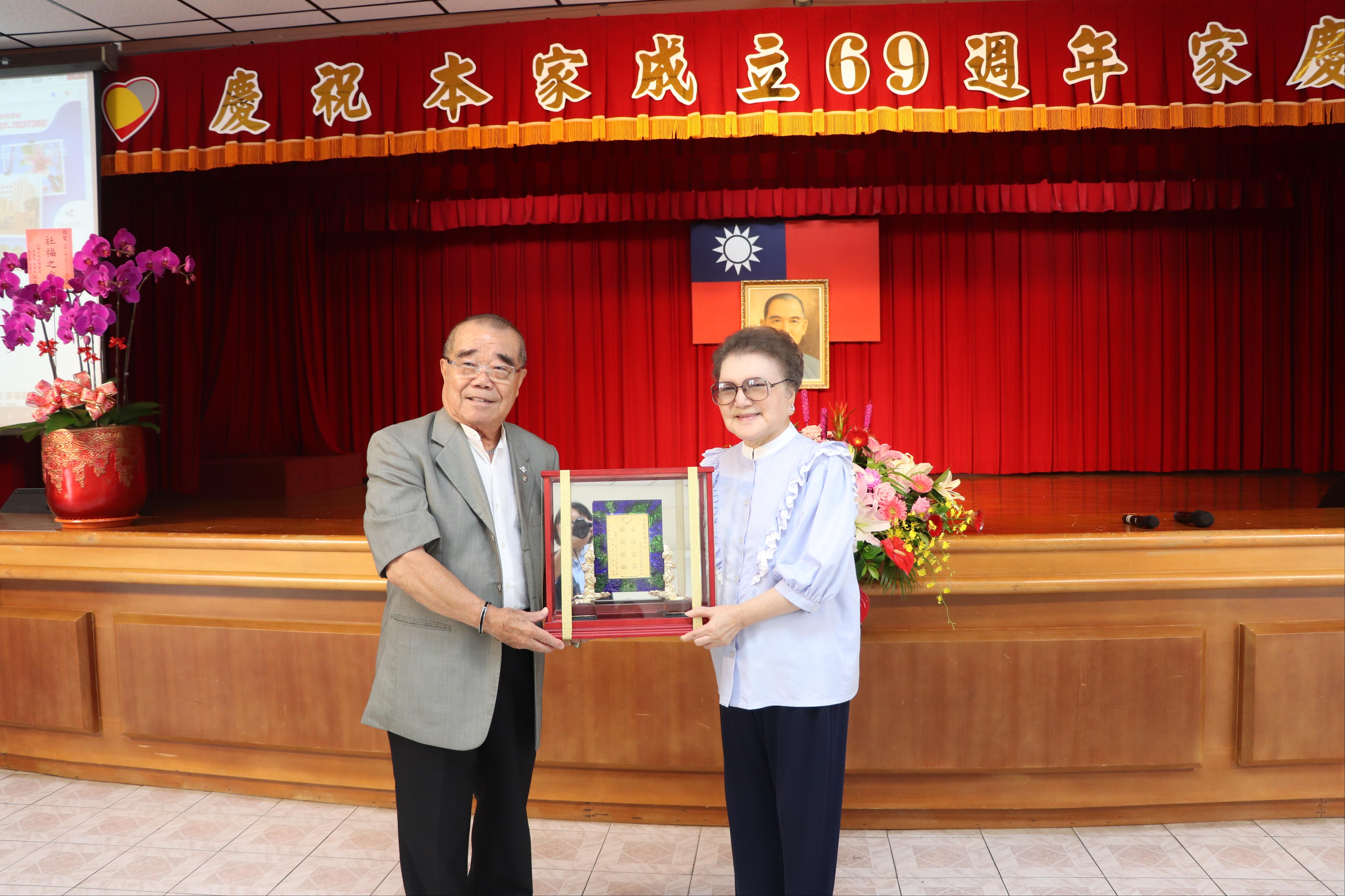 今年獲頒資深董事的有李文雄董事,李文雄董事自71年受邀擔任本家董事至今已滿35週年,特頒「文采出眾 雄健圓融」獎牌,以表敬謝之意。李董事本身從商,因經商有成受邀擔任本家董事,提供企業管理的專業諮詢,幾乎未曾缺席董事會議。李董事性情溫和總是笑臉迎人,在本家60週年特刊中,以「凡事忍耐、凡事盼望」勉勵同仁以和為貴,對未來懷抱希望。