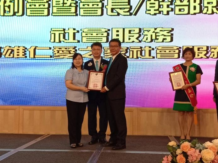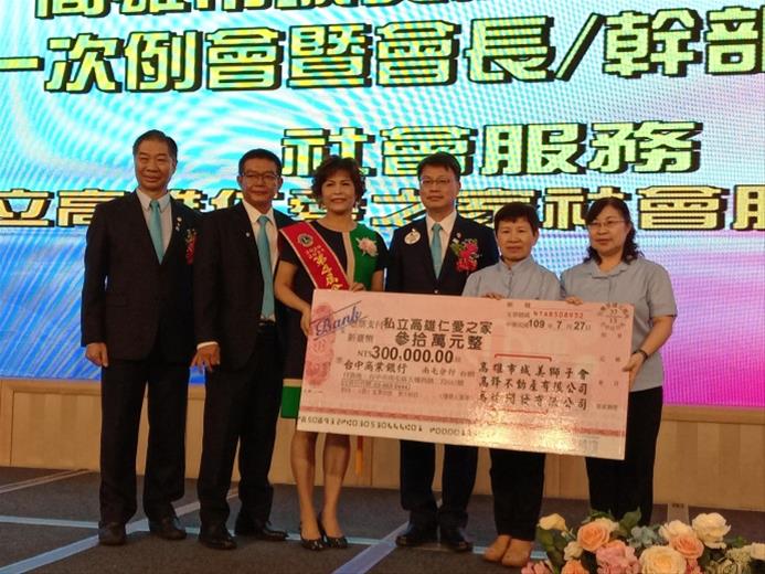 城美獅子會第四屆會長陳嘉聆女士於109年7月交接上任,7月27日辦理「城美獅子會第四屆第一次例會暨會長/會務幹部就職典禮」,典禮中捐贈本家社會服務金30萬元,分別由城美獅子會、高鋒不動產有限公司、高德開發有限公司各捐贈10萬元,將用於照顧銀髮長輩,本家慈愛老人養護中心馬榮梨主任、敬老所陳淑卿所長代表本家前往受贈,並致贈感謝狀,本家也回贈與會人員「張雅玲的串愛人生」書籍,讓獅友們更認識本家開展的社會服務。