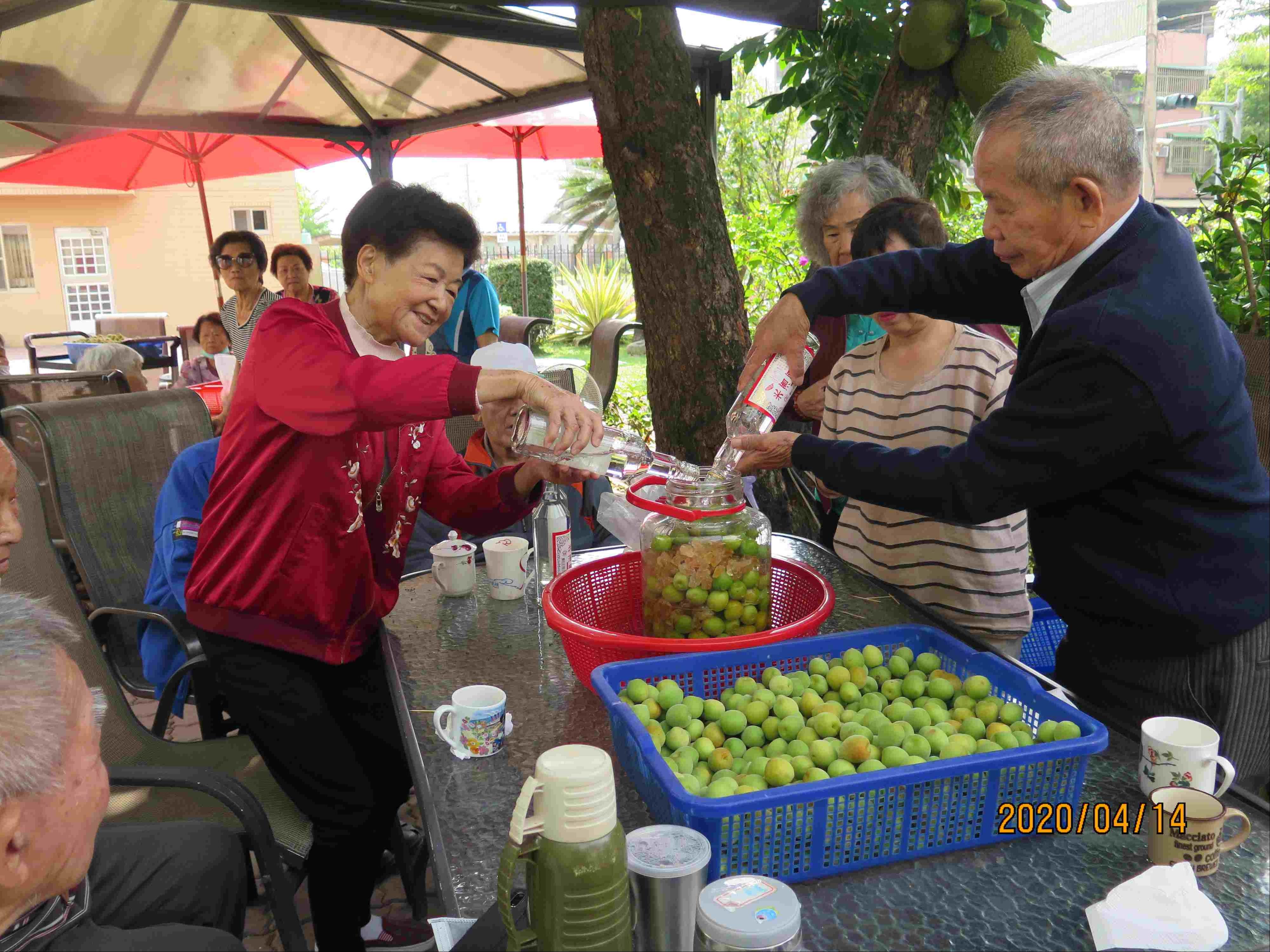 「梅酒再一杯!」陳爺爺說著,話還没停歇「足好喝欵!」蔡奶奶就搶著接話,歲末圍爐聚餐時刻,社區名氣餐廳辦桌的餐點,佐以長輩自釀梅酒的美食饗宴,讓長輩有一種期待實現的喜悅感受,自3、4年前開始,這樣的傳統是每年敬老所的活動大事記。