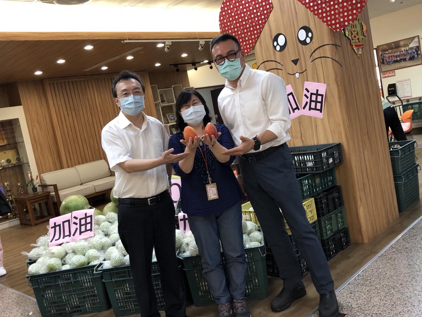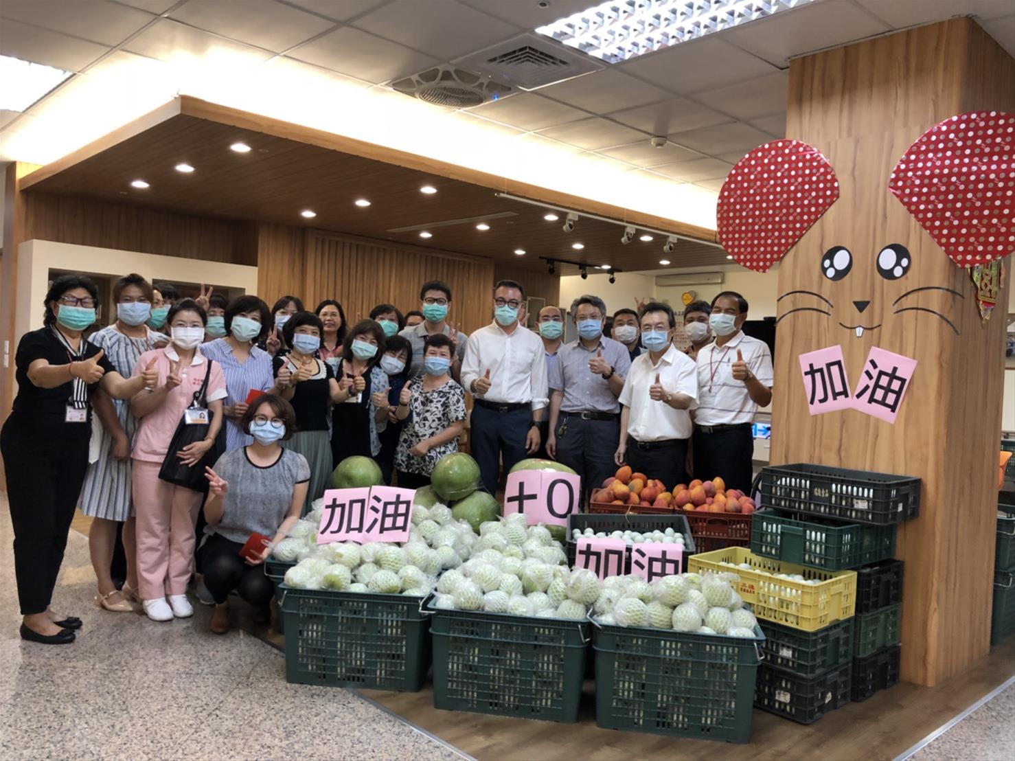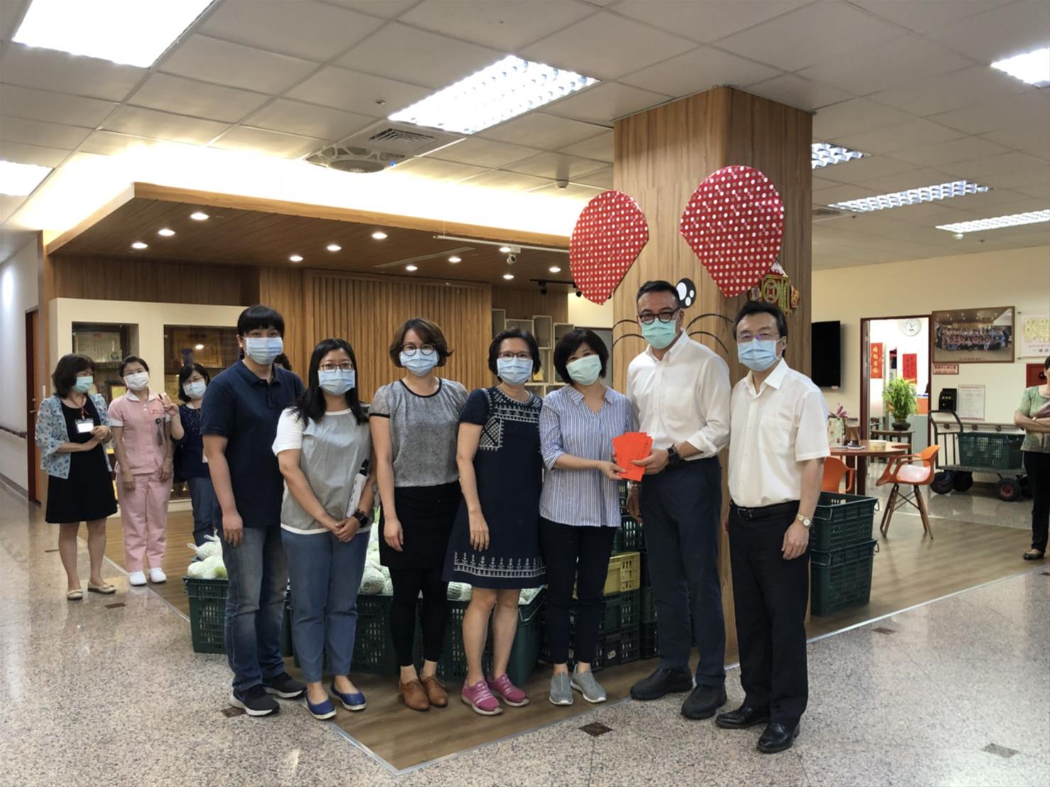 王敬豪董事及林國慶執行長特於5月12日獻上感謝,除謝謝慈惠醫院鍾偉倫院長領導有方,也感恩各業務單位成員的付出與辛勞,會中頒發鍾院長獎金,也購置一大卡車的農產品分享員工。農產品內容有;屏東縣愛文芒果、鹹鴨蛋、燕巢芭樂及象徵零確診的西瓜等為禮品,分送辛勤工作的夥伴們,肯定本家團隊付出。
