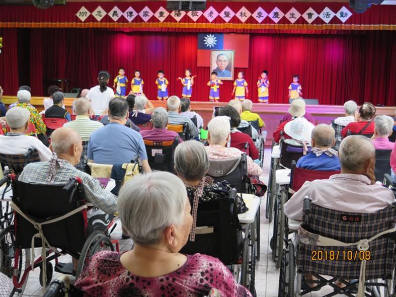 活動一開始林國慶主任與長輩們寒暄話家常,並與多位阿公阿嬤一起切蛋糕唱生日快樂歌,為秋季生日的住民們祝壽。緊接著勵志幼稚園小朋友為爺爺奶奶帶來多首活潑歡樂的舞蹈,萌得所有人都眉開眼笑,直呼“五告古錐”!