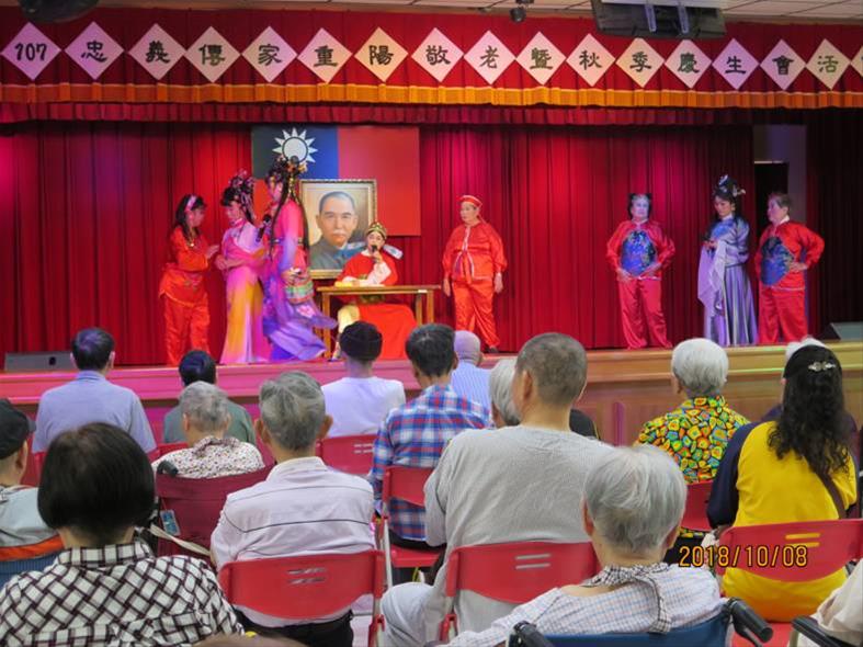 “千歲歌仔戲團”一登場就吸引了所有人的目光,雖然是義演,但造型與妝髮完全不馬虎,團員中有丑角、小生、老旦、花旦、彩旦、淨旦等角色。主題雖為嚴肅的“防止家庭暴力“,但經過玉龍華劇團陳思涵團長指導及巧妙的安排,整部戲看起來精彩豐富又有趣,逗得長輩各個開懷大笑,掌聲不斷。活動的尾聲贊助本次活動經費的「聖道慈善會」上台為所有的住民獻唱多首祈福歌曲,為活動畫下完美的句點。