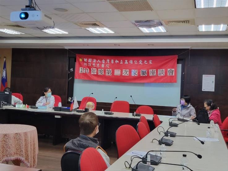精神疾病需要長期抗戰,並不是一時半刻就可以痊癒,而身為精神疾病病人的家屬除了照顧病人,也需要面對病人可能出現的突發狀況,這對家屬而言,身心靈受到極大壓迫。長期累積的壓力需要適時釋放,才有力量繼續照顧病人。因此本院一年舉辦四次家屬座談會,藉由座談會增進家屬照顧知能,也讓家屬有機會與其他家屬互動,達到互相支持與成長。