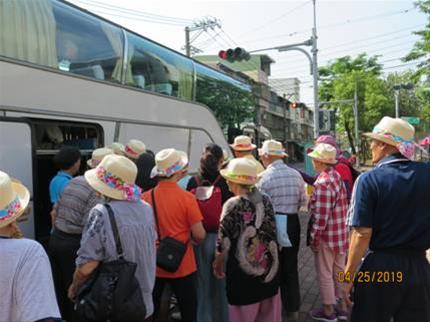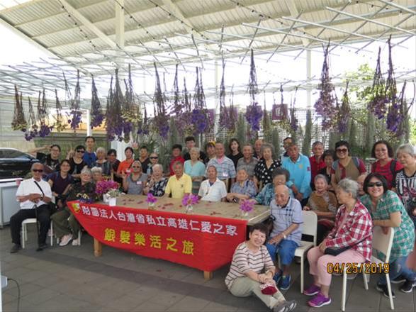 4月25日長輩們一早就打扮好等待著開始今天的旅遊,行程目的地-天使花園銀髮樂活之旅。感謝社工師麗宜與所長為長輩貼心的安排,租了這台有上下升降輔助設備讓腳力不佳的長輩可輕鬆上車出遊,長輩們非常滿意與開心。一路上有志工大姊主持(談天說笑、跳舞、唱卡拉OK等),車窗外是晴朗的好天氣,經過之處是綠意盎然(稻田、果樹)。