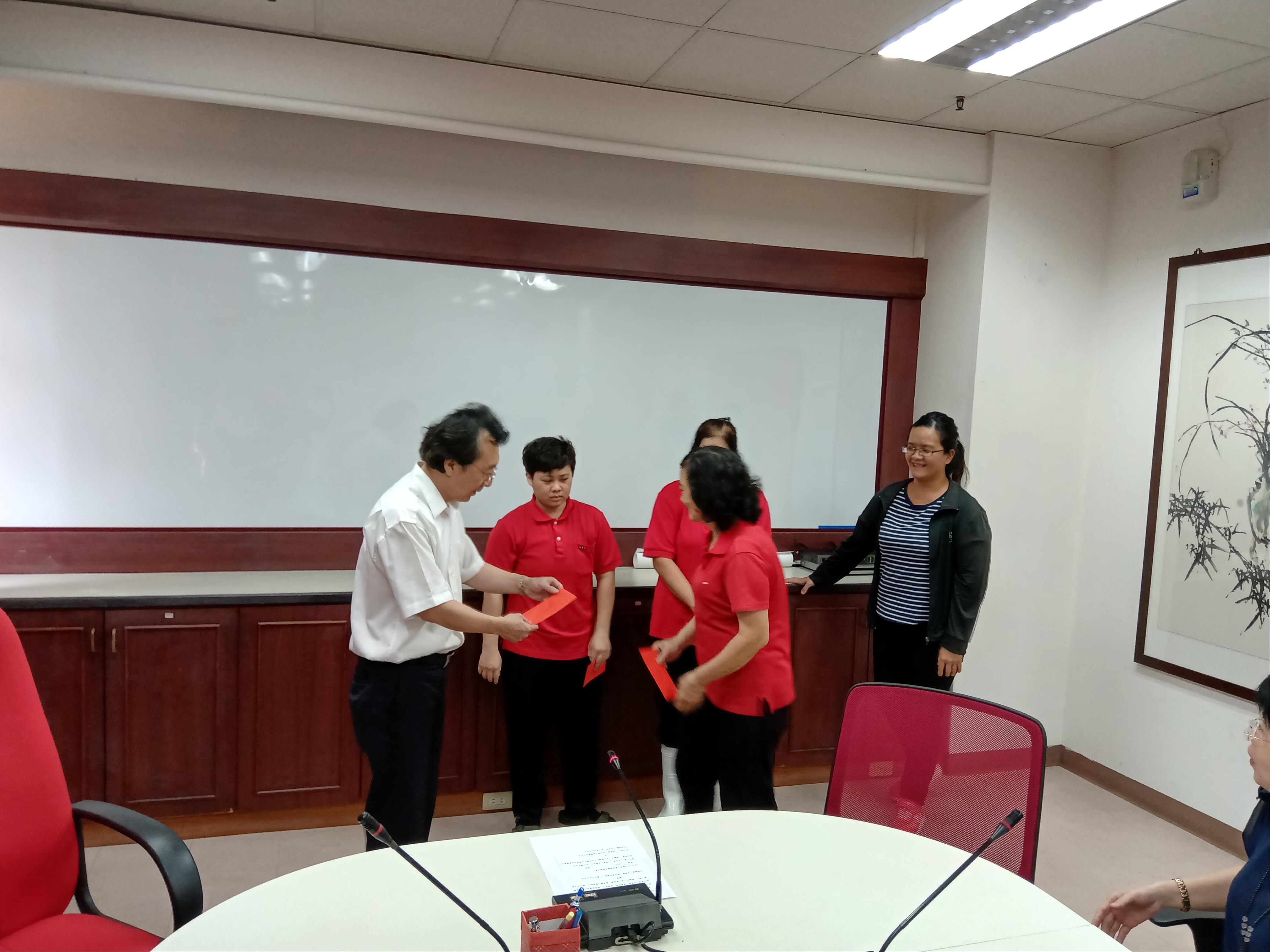 108年10月22日這一天廚房歡天喜地開心接受領獎,受獎人總計8位:林淑芬、林惠珍、林筱菱、李秀銀、許素珠、劉勤和、黃敏惠、莊素玲,王敬豪董事與林國慶家主任並勉勵大家繼續加油,繼續保持美味的手藝。