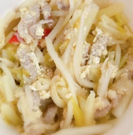新鮮韭黃炒入鮮脆筍絲帶點香氣的豬肉絲佐入蛋讓味道整個融合在一起,一點的辣椒絲提味,融合味道中帶點跳躍的口感讓您一口接一口。