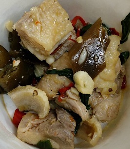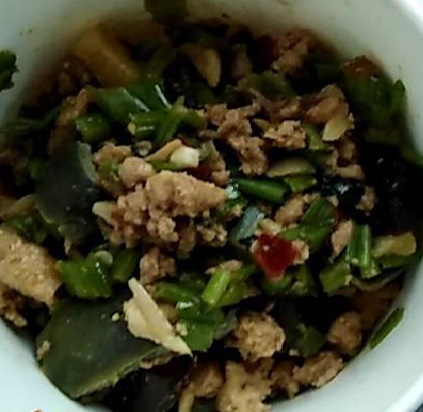 新鮮水蓮加入一點蒜末爆香佐破布子提味,加上帶點油脂的豬肉絲帶點微微的辣這鮮脆爽口的滋味一定要嚐嚐。