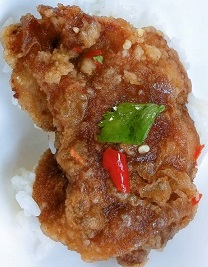 咬下去喀滋喀滋的外皮帶著鮮嫩雞腿排,舌頭味蕾接觸到泰式醬的酸甜,口腔裡充滿著椒麻雞的香氣,在來一塊!!