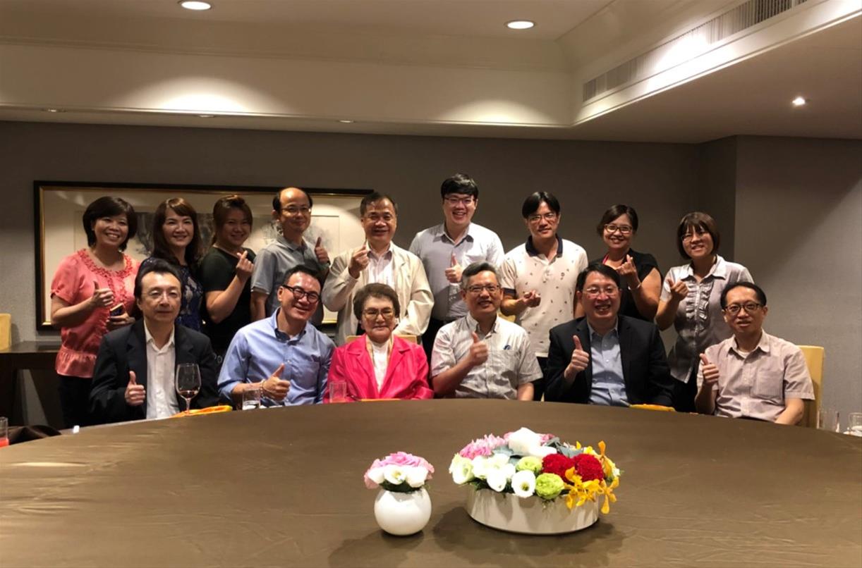 高雄醫學大學附設中和紀念醫院與本家餐敘。 張雅玲董事長(中)、王敬豪董事(左二)及林國慶執行長(左一)感謝高醫精神部陳正生教授(右二)、柯志鴻主任(右一)與慈惠醫院鍾院長(右三)及精神部醫師群齊聚一堂! -