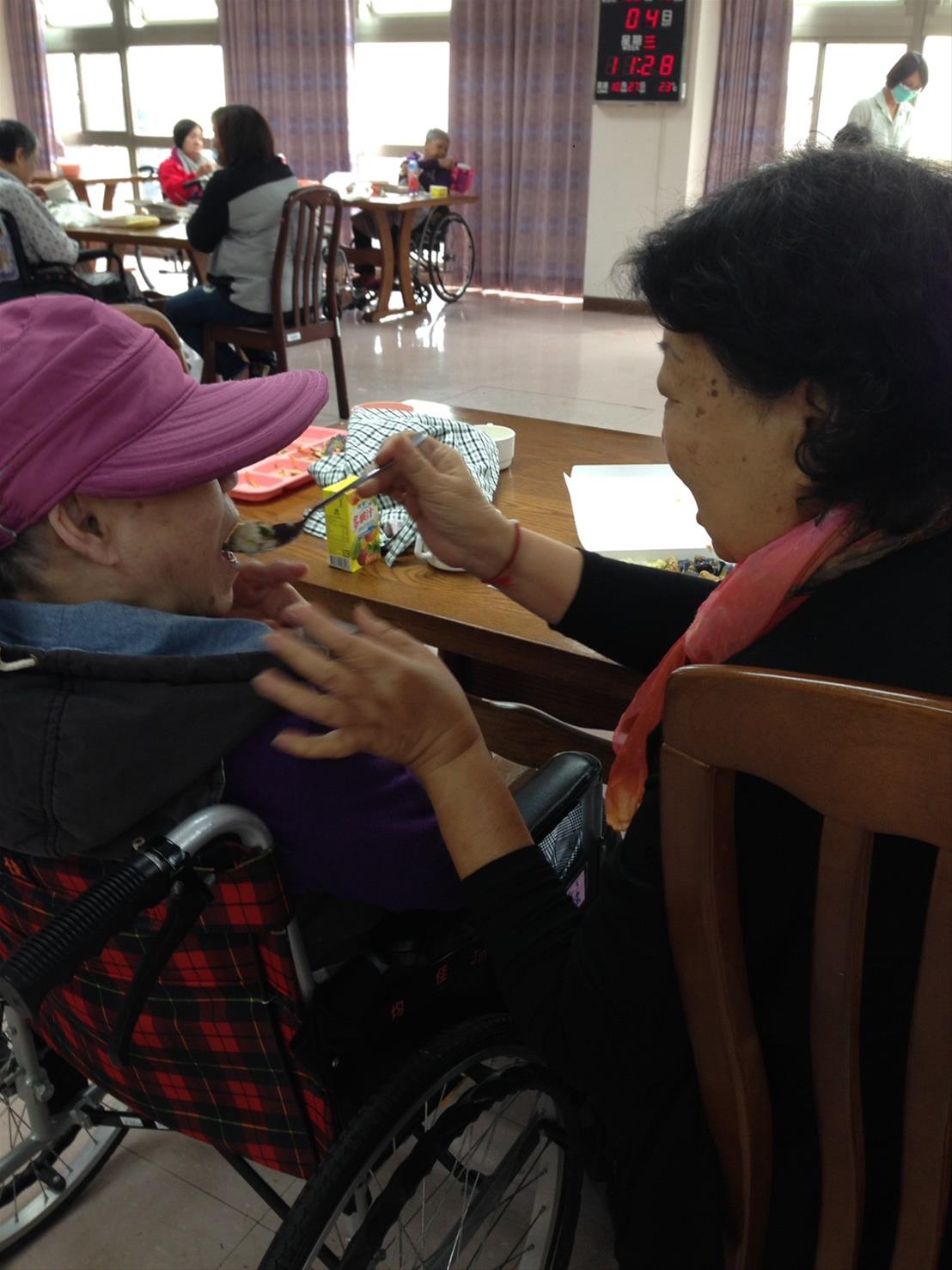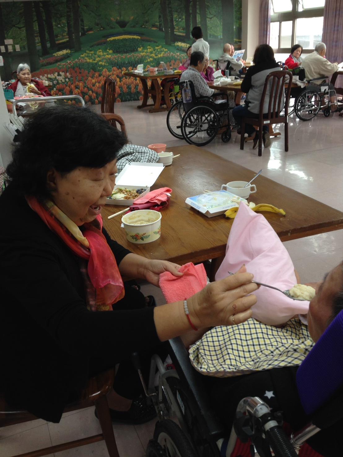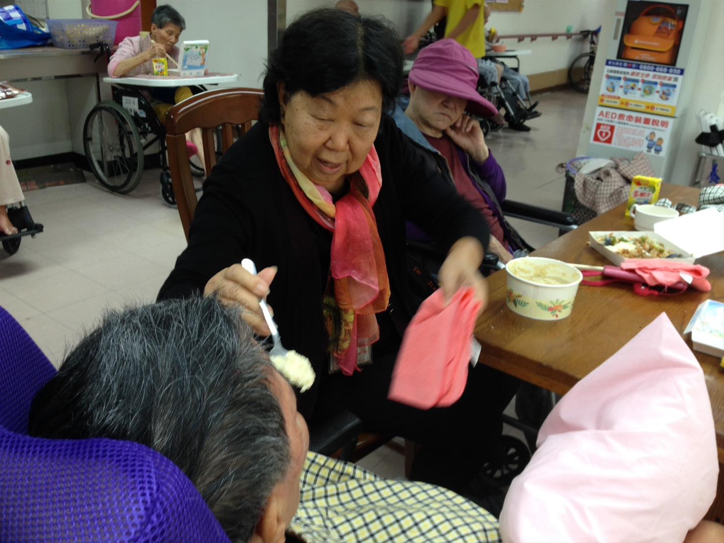 民國78年就投入仁愛之家的工作,從專員、養護中心副主任、董事會秘書,整整30年的歲月奉獻在仁愛之家,於今年108年退休,榮退後仍然在仁愛之家繼續服務,每週一慈愛老人養護中心的陽光計畫活動,可以看到于姐推中心長輩曬太陽的身影;每天的午餐時間,只要踏入二樓護理站,就可以看到一個親切的身影,耐心的在幫忙勸餵長輩進食,即使與長輩講得是每天重複一樣的話題,也看不到絲毫的不耐煩,臉上所流露出的是滿滿和藹與笑容,不急不徐、一匙接遞一匙的餵完餐食。「于姐,為什麼您每天來餵這些長輩吃飯呢?」因為感受到她的真心跟用心,我好奇的問了她。她看著奶奶們,笑了笑,看著我說: 「因為我曾經當過養護中心副主任,我知道你們真的都好忙,恨不得自己像章魚一樣有3、4雙手,而這些長輩吃得很慢需要慢慢勸餵,吃完一碗餐食將近一個小時,所以如果可以的話,我會來餵他們吃飯,看著他們一口一口吃完,我自己也好開心!」、「我們每個人都會老,當我們老了以後,希望有人可以聽我們說話;吃飯動作不再俐落了,希望可以有人慢慢餵我吃飯,我只是秉持著仁愛之家的中心思想~視老如親、將心比心而已啊!」,于姐臉上露出的是滿滿的慈祥…看著她跟奶奶相對而視的笑容,這是多麼動容的畫面,心中不由得深深讚嘆:「于姐,您真是平凡中的不平凡啊!」